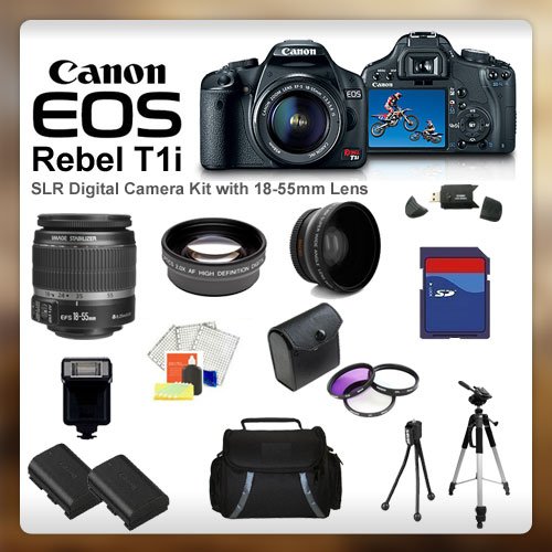 Related Canon EOS Rebel T1i SLR Digital Camera Kit with 18-55mm Lens + SSE PRO Shooter Deluxe Carrying Case, Batteries, Lens, Flash & Tripod Complete Accessories Package